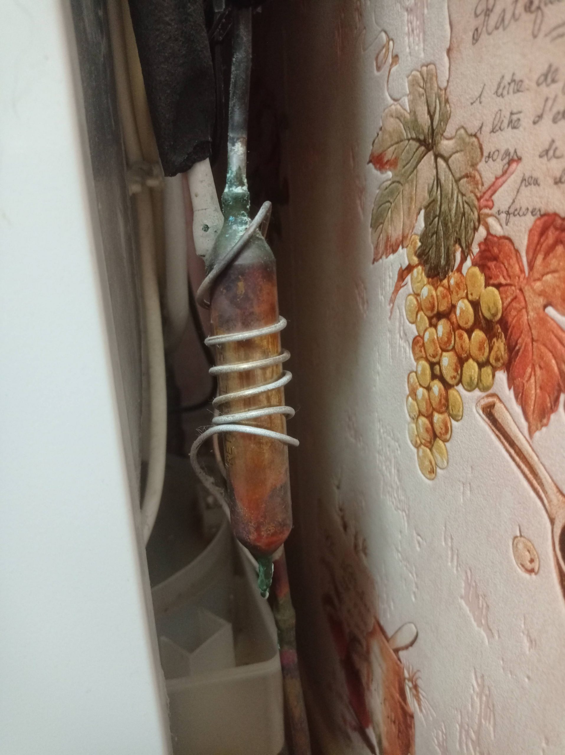 Добрый день! Холодильник «Атлант» мхм 1847-47 приобретен в 2008 году. Менял один раз компрессор в 2015 году. Неделю назад стал при работе дребезжать. К задней стенке подставляешь руку- тишина. Убираешь-дребезжание повторяется. На трубках заметил зелёный налет. Связанно ли это с громкой работой? Фото прилагаю.